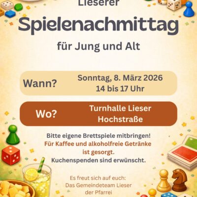 Mehr lesenDas kath. Gemeindeteam Peter & Paul lädt zum Spielenachmittag ein.