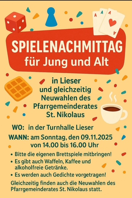 Sternsingeraktion Lieser 2026 wir als Gemeindeteam organisieren im Jahr 2026 die Sternsingeraktion in Lieser. Am Samstag, den 10. Januar 2026 gehen die Sternsinger durch Lieser. Die Leitung der Sternsinger-Organisation in Lieser übernehmen Tanja Mehn und Marco Geller. An der Aktion dürfen Lieserer Vorschulkinder, Lieserer Kinder unserer Grundschule sowie der weiterführenden Schulen teilnehmen. Unser Ziel ist...